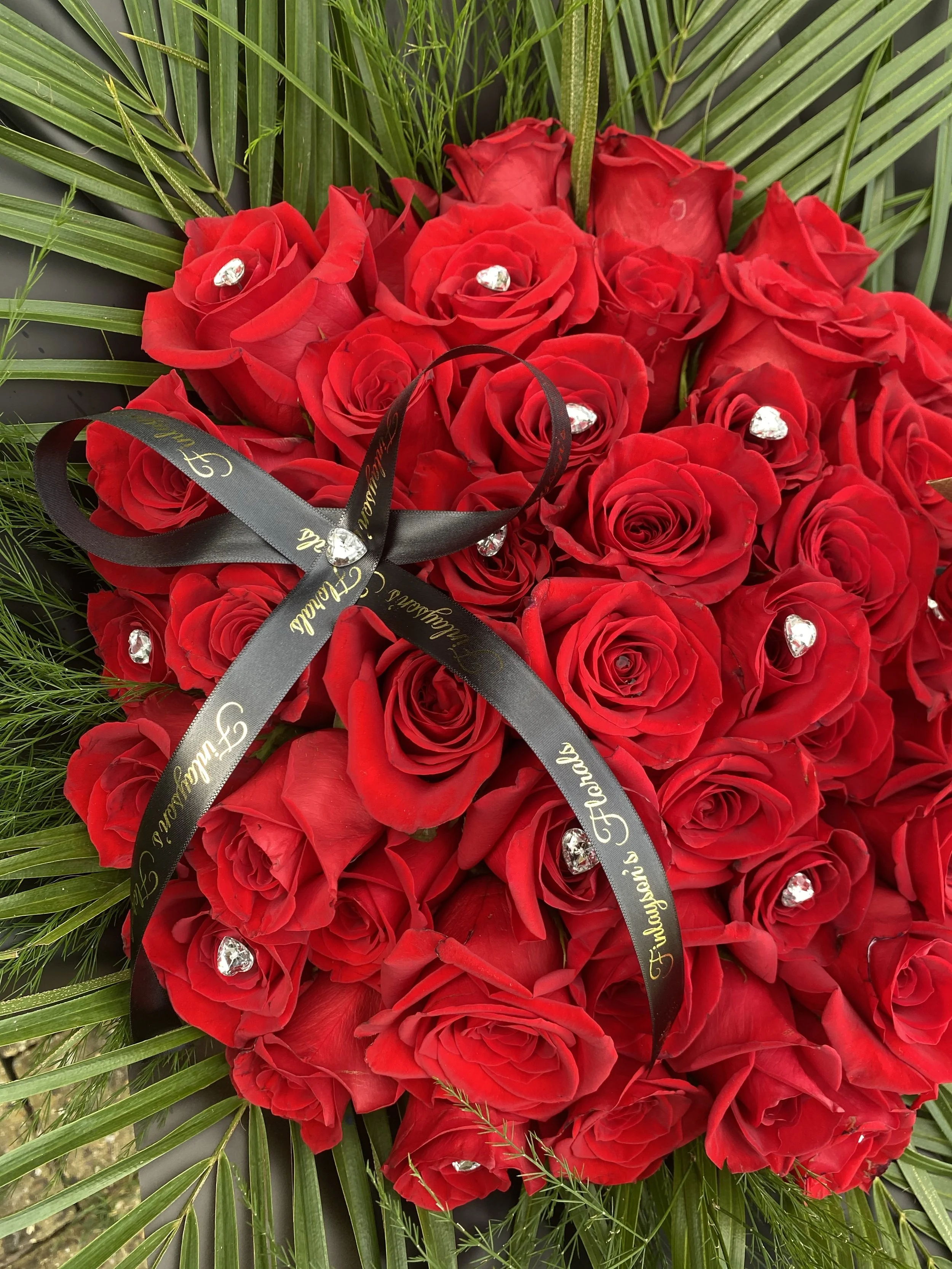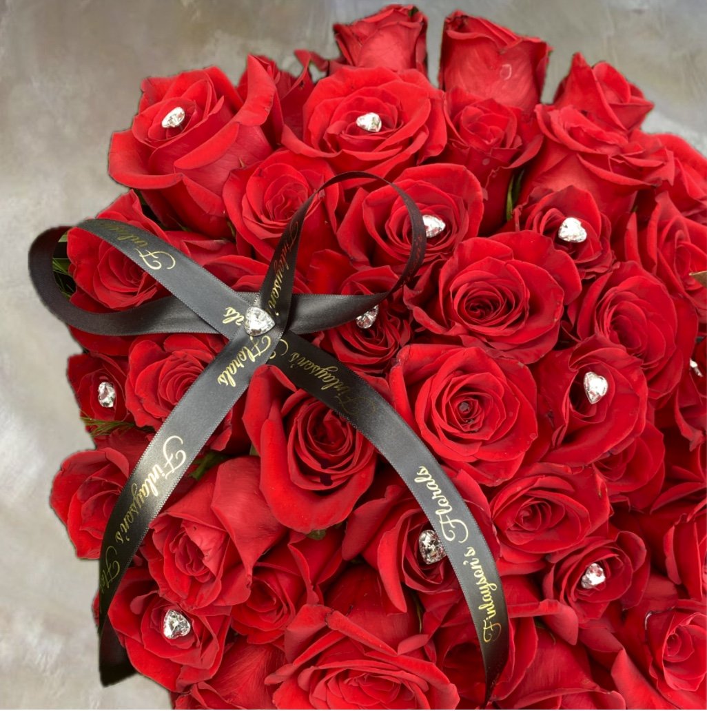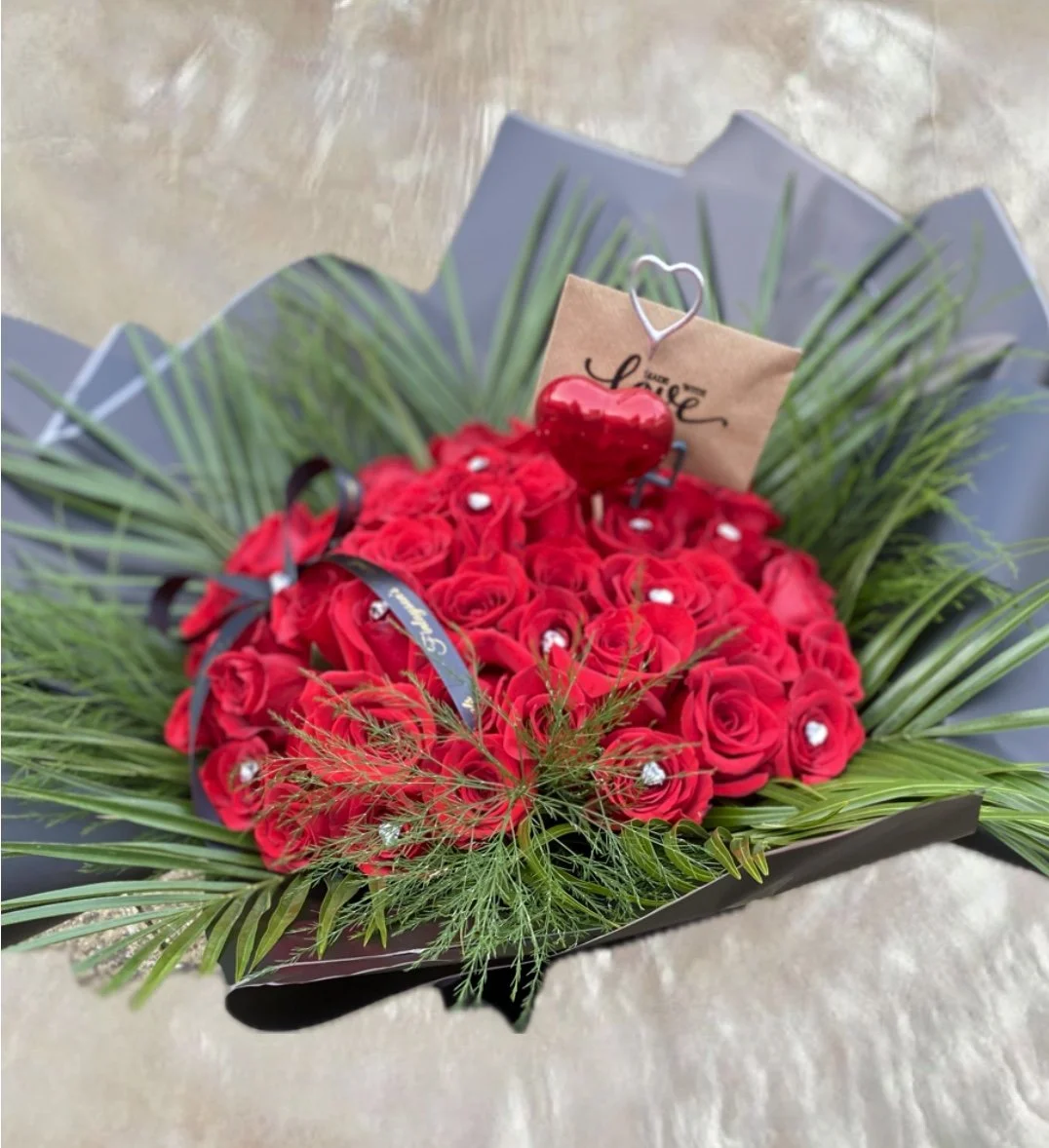 A truly breathtaking expression of love, this luxurious bouquet features 100 stunning Freedom red roses, pink or white roses, each bloom a symbol of deep passion and romance. Carefully arranged with a delicate touch of greenery to enhance their beauty, the bouquet is finished with elegant wrapping, jewelled pins, and tasteful finishing touches, creating an unforgettable presentation. Perfect for making a grand gesture, this exquisite arrangement will leave a lasting impression on your loved one, conveying the depth of your affection in the most unforgettable way.